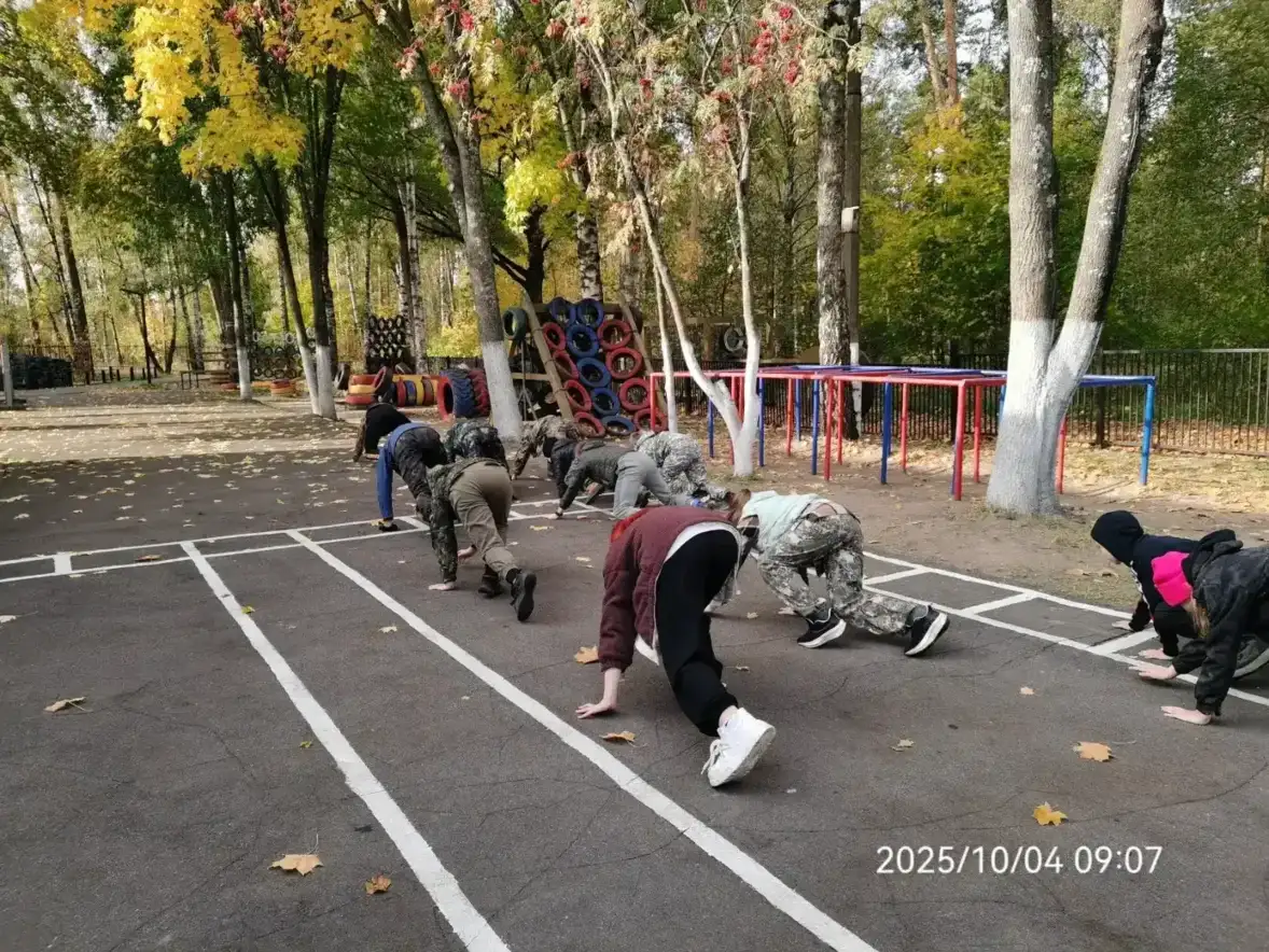 День начался с активной разминки на свежем воздухе. Ребята выполняли общеразвивающие упражнения: бег, прыжки и элементы полосы препятствий, что позволило им хорошо разогреть мышцы и подготовить организм к дальнейшим нагрузкам.